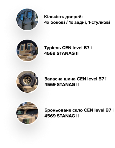 Бронований гігант мобільності та безпеки. З його внутрішніми розмірами і потужними конструкціями він здатний ефективно переміщатися по самим складним типам місцевості, забезпечуючи надійний захист і перевезення значущих вантажних навантажень. Незалежно від умов дороги або бездорожжя, ця машина готова виконати будь-яку поставлену задачу з неймовірною надійністю та продуктивністю.